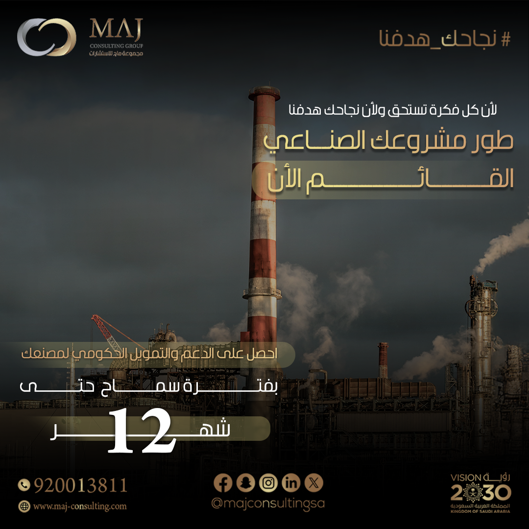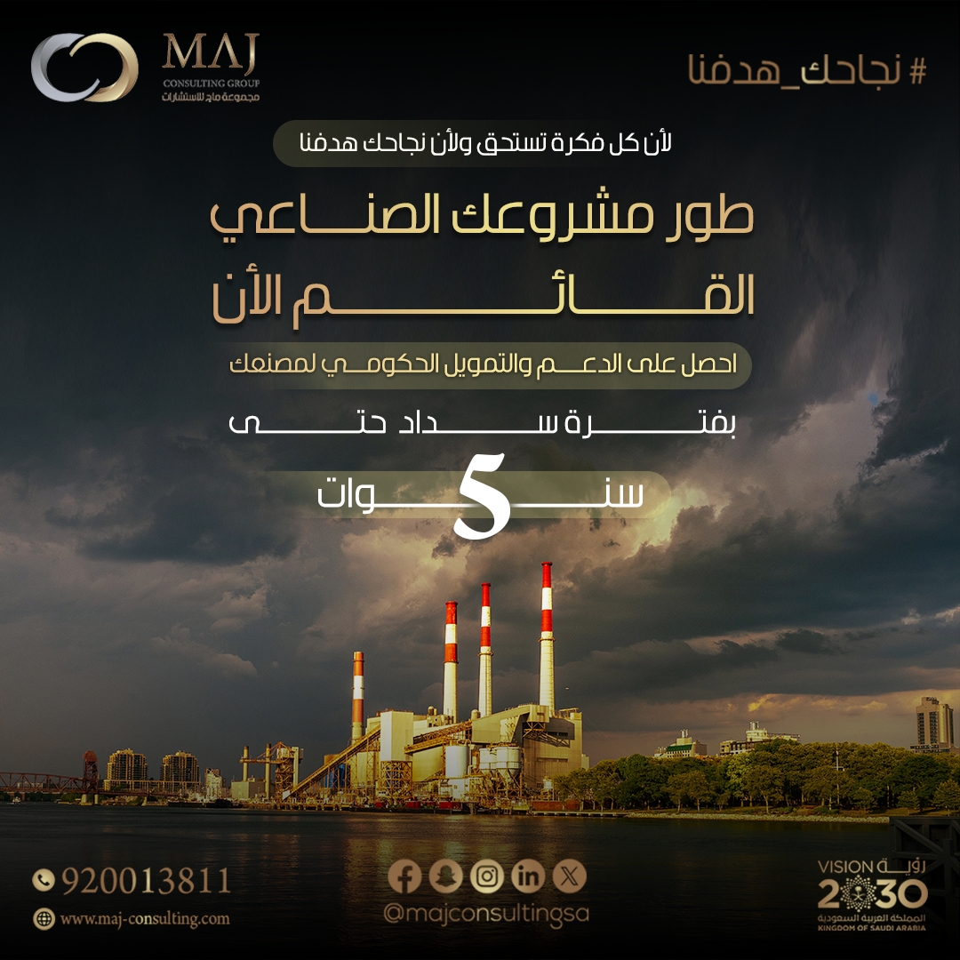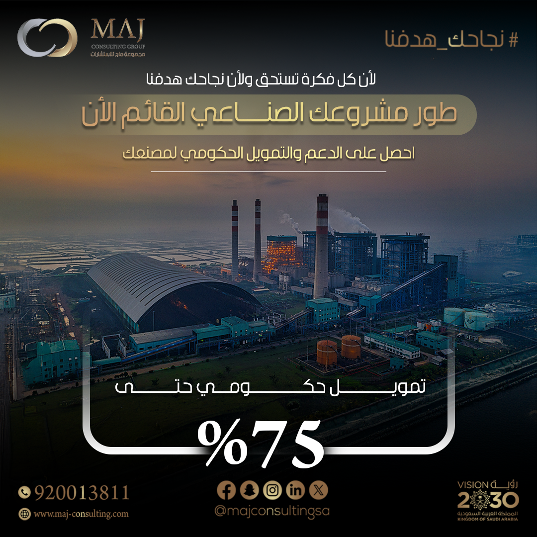 ابدأ و نمِّ مشروعك الصناعي بتمويل حكومي يصل حتى 75% من التكلفة الرأسمالية والتشغيلية للمشروع